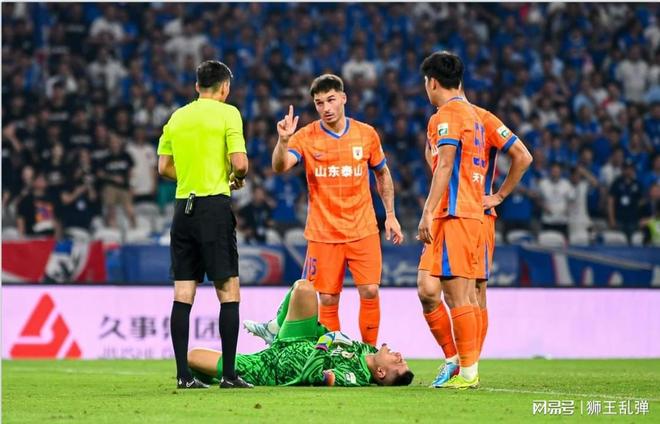 更让泰山队无法接受的争议发生在第64分钟。申花球员汪海健利用角球机会完成破门,看似将比分锁定为3-3,但慢镜头显示,在皮球飞行过程中,申花后卫李可在禁区内明显对泰山队门将王大雷实施了推搡干扰动作——王大雷本已做好扑救准备,却因身体被冲撞失去平衡,最终眼睁睁看着皮球入网。面对泰山队球员的激烈抗议,买买提江再次坚持原判,认定进球有效。这一判罚直接让泰山队到手的胜利化为泡影,赛后泰山队球员瘫坐在场地上的画面,成了无数球迷心中“公平缺失”的缩影。