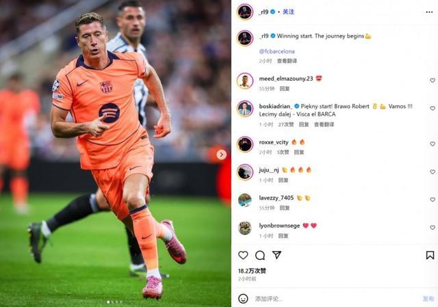 客胜纽卡!莱万社媒晒照庆祝:以胜利起步,旅程开始了!