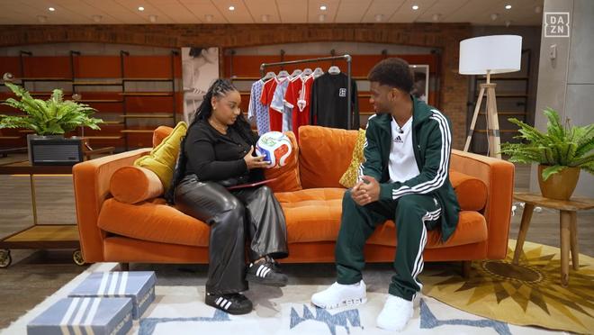 我们现在在阿迪达斯总部进行一场特别的采访。今天的嘉宾,是一位近年来把曼彻斯特当作家的球员,他希望能在今夏的世界杯上,用全新的阿迪达斯TRIONDA足球闪耀赛场——来自曼联与科特迪瓦的前锋,阿马德-迪亚洛。阿马德,欢迎来到阿迪达斯总部,最近怎么样?
