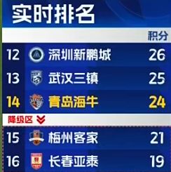 - 中超 | 随着海牛队10三镇队,中超积分:亚泰提前降级,梅州客家也悬了